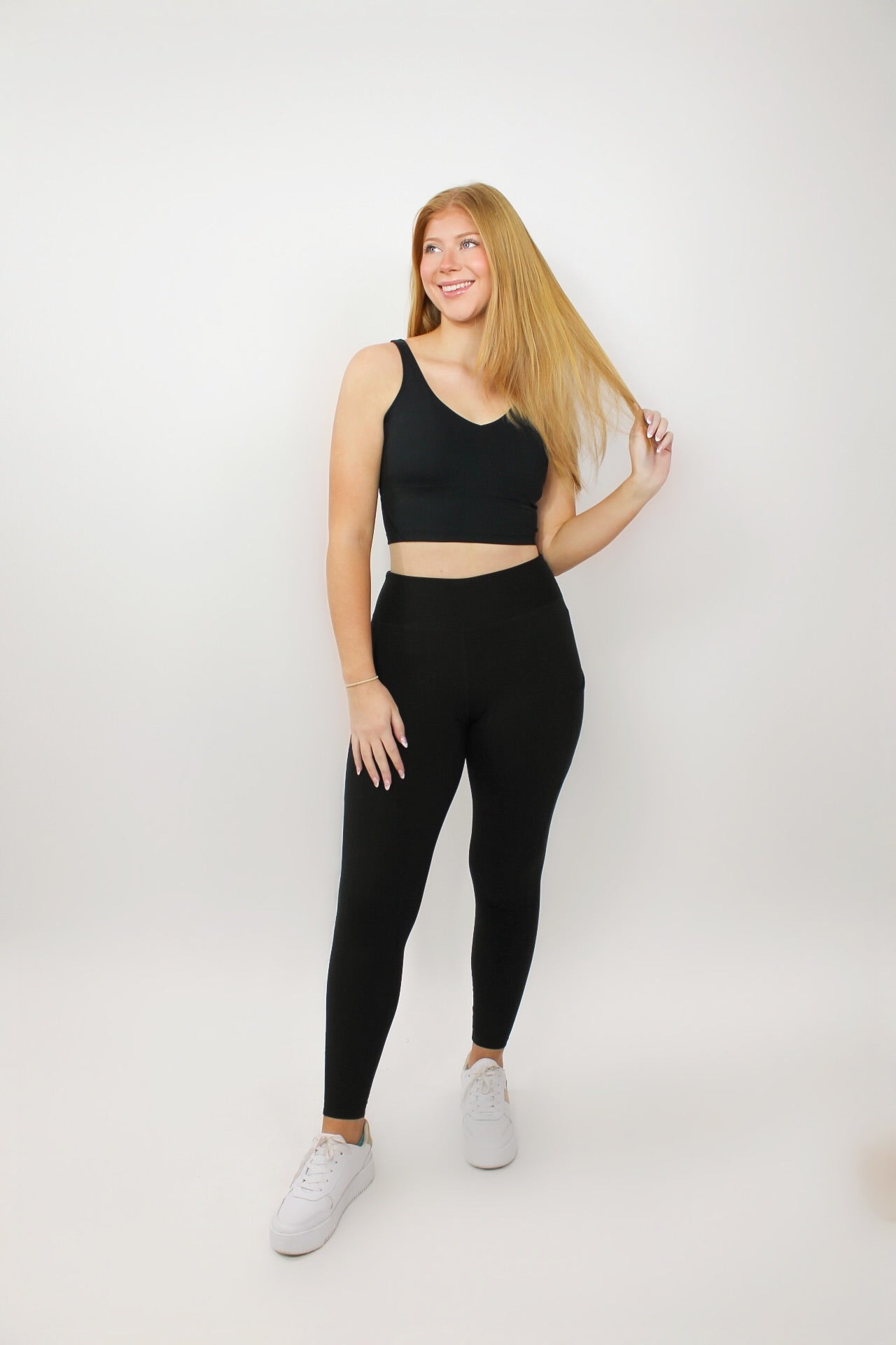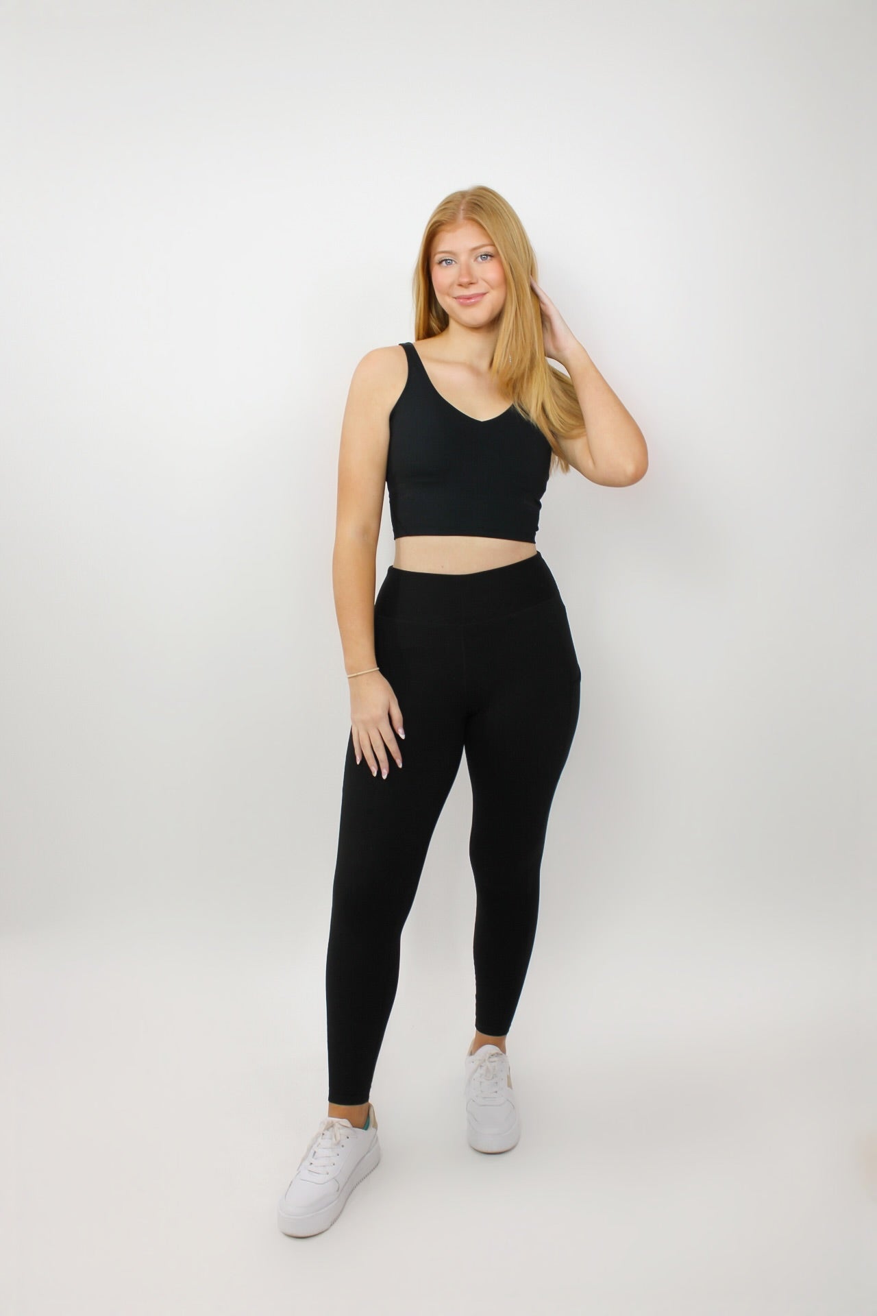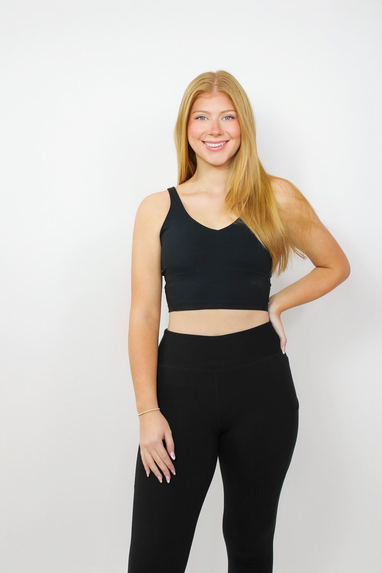 Courtney is 5’6 wearing a size small.