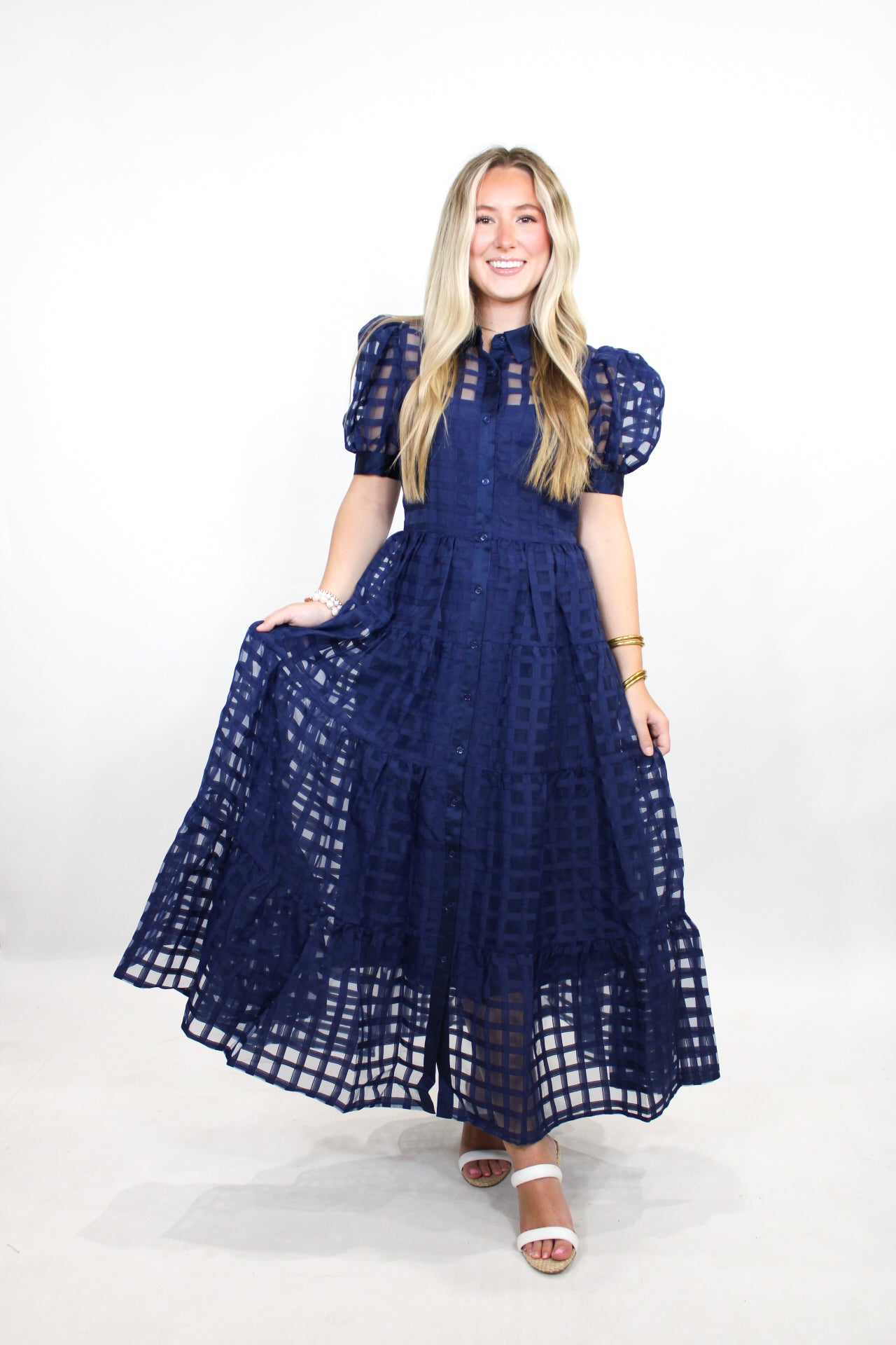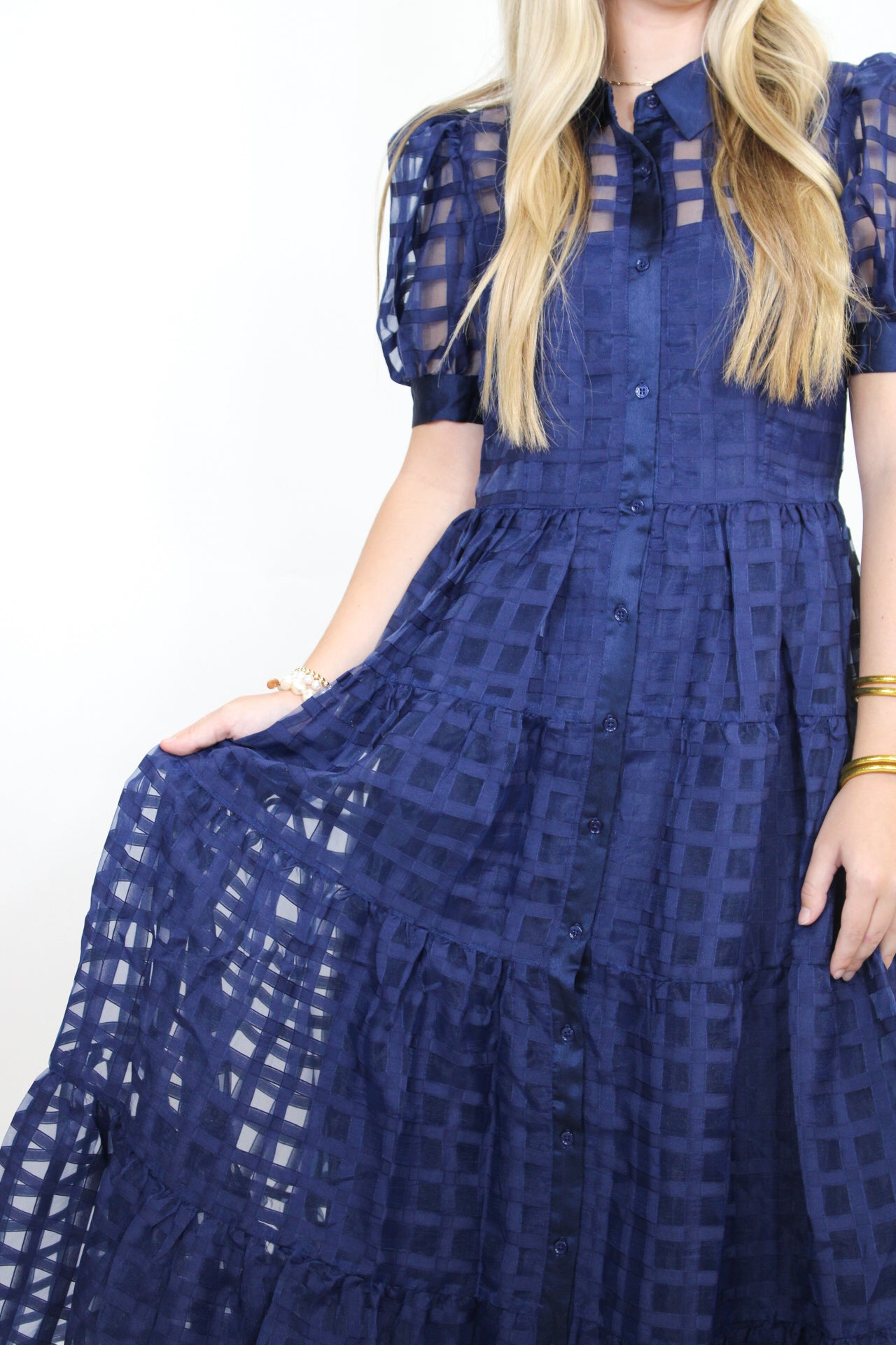 Rachel is 5’3 wearing a size small.- Puff Sleeve.- Full Button Down.- True to Size.