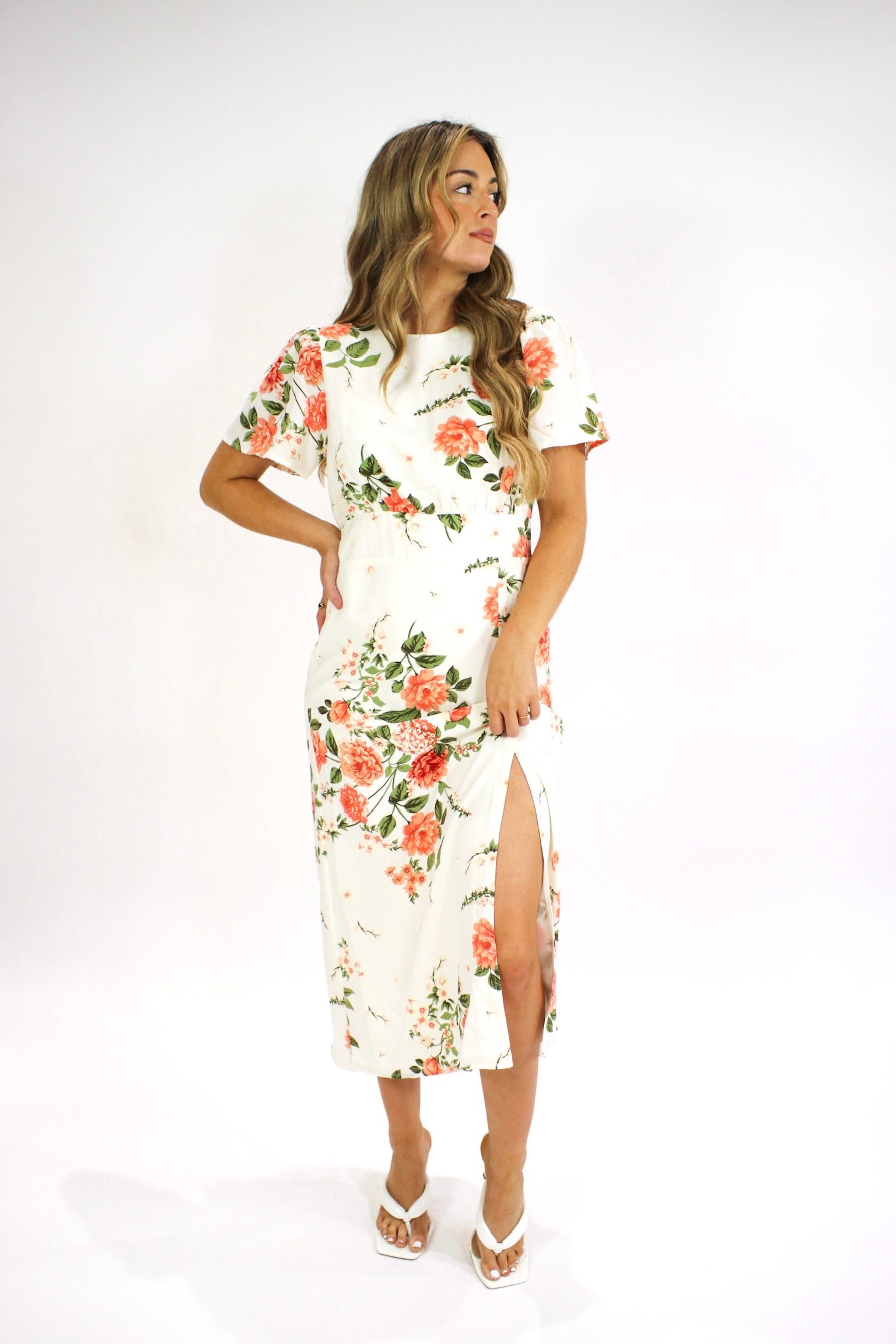 – Peach Floral Midi
