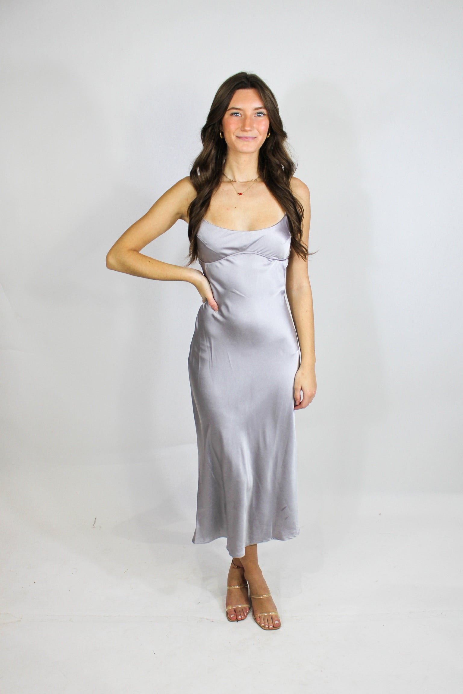 – Silver Satin Midi.